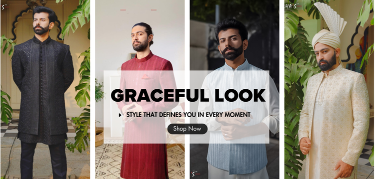Our Sherwani is designed with a perfect balance of tradition and modern style. Crafted from premium fabrics with fine detailing, it gives you a graceful and royal look, making every occasion truly memorable.